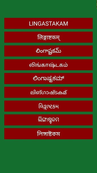 L'interfaccia dell'app è semplice e intuitiva, consentendo una navigazione fluida tra le diverse lingue e versioni del canto. Lingashtakam non solo offre l'audio delle canzoni, ma può anche includere testi per facilitare il canto e la comprensione. In sintesi, è un'app utile per la pratica spirituale e per la diffusione della cultura musicale indiana.